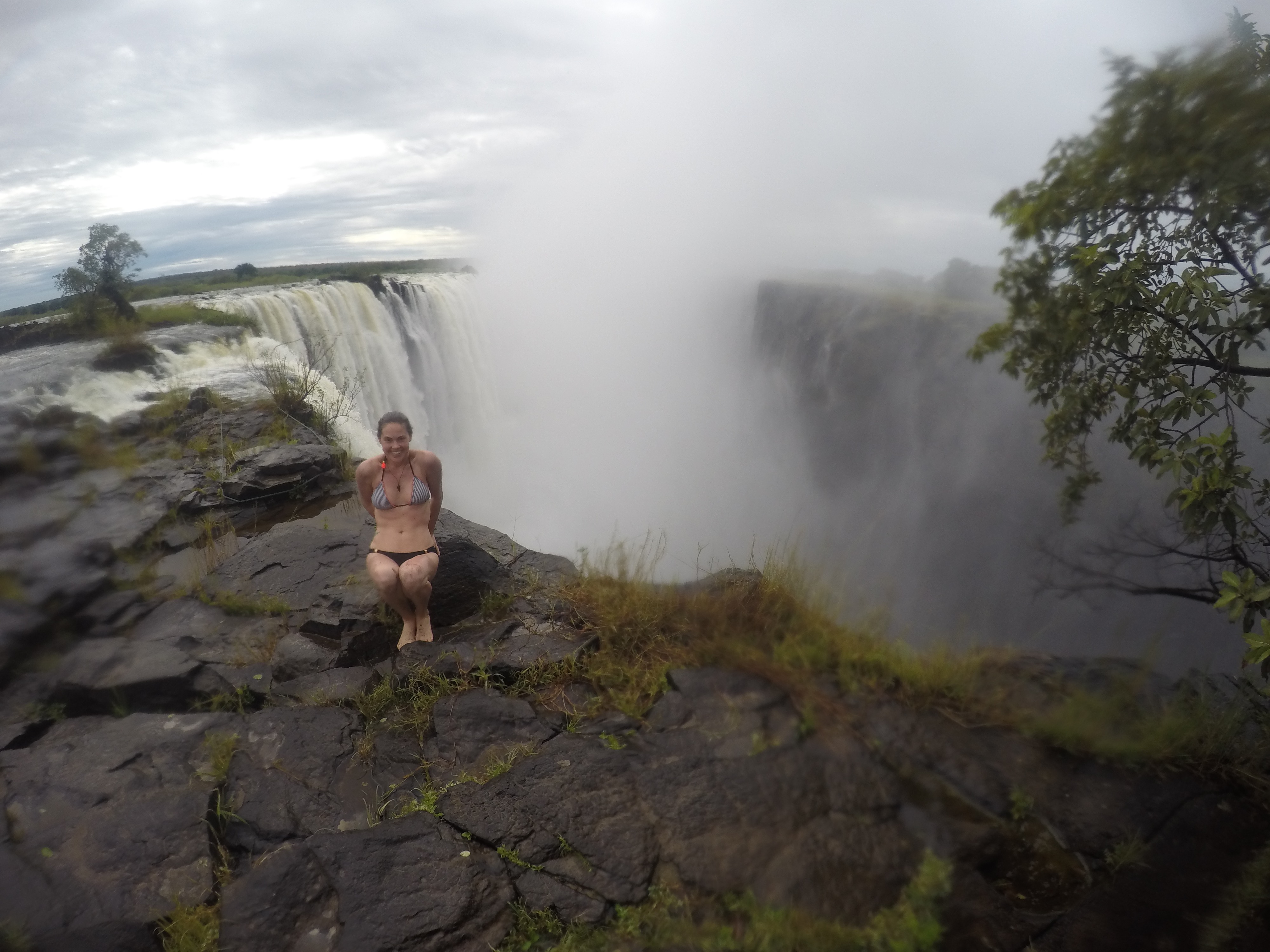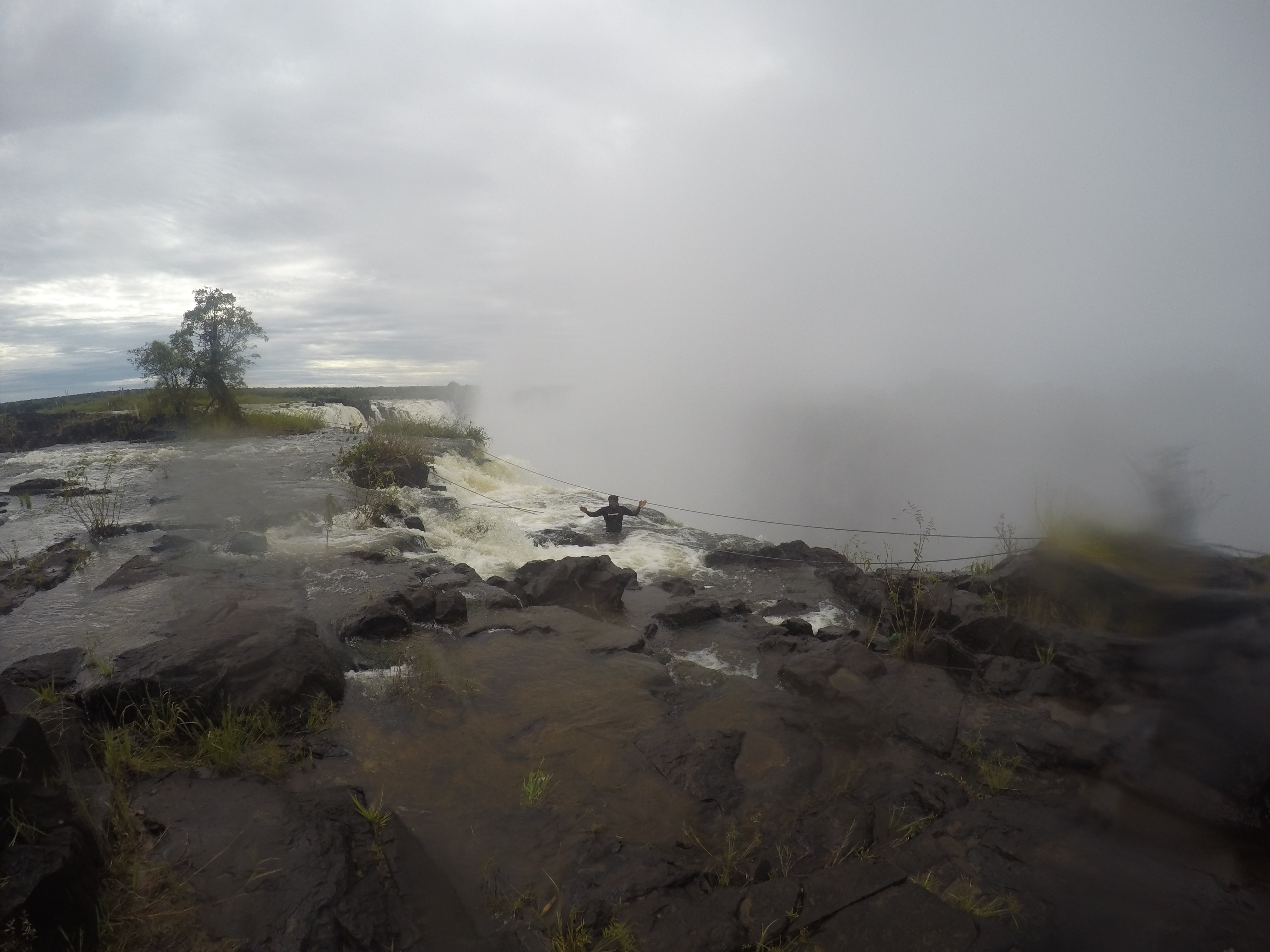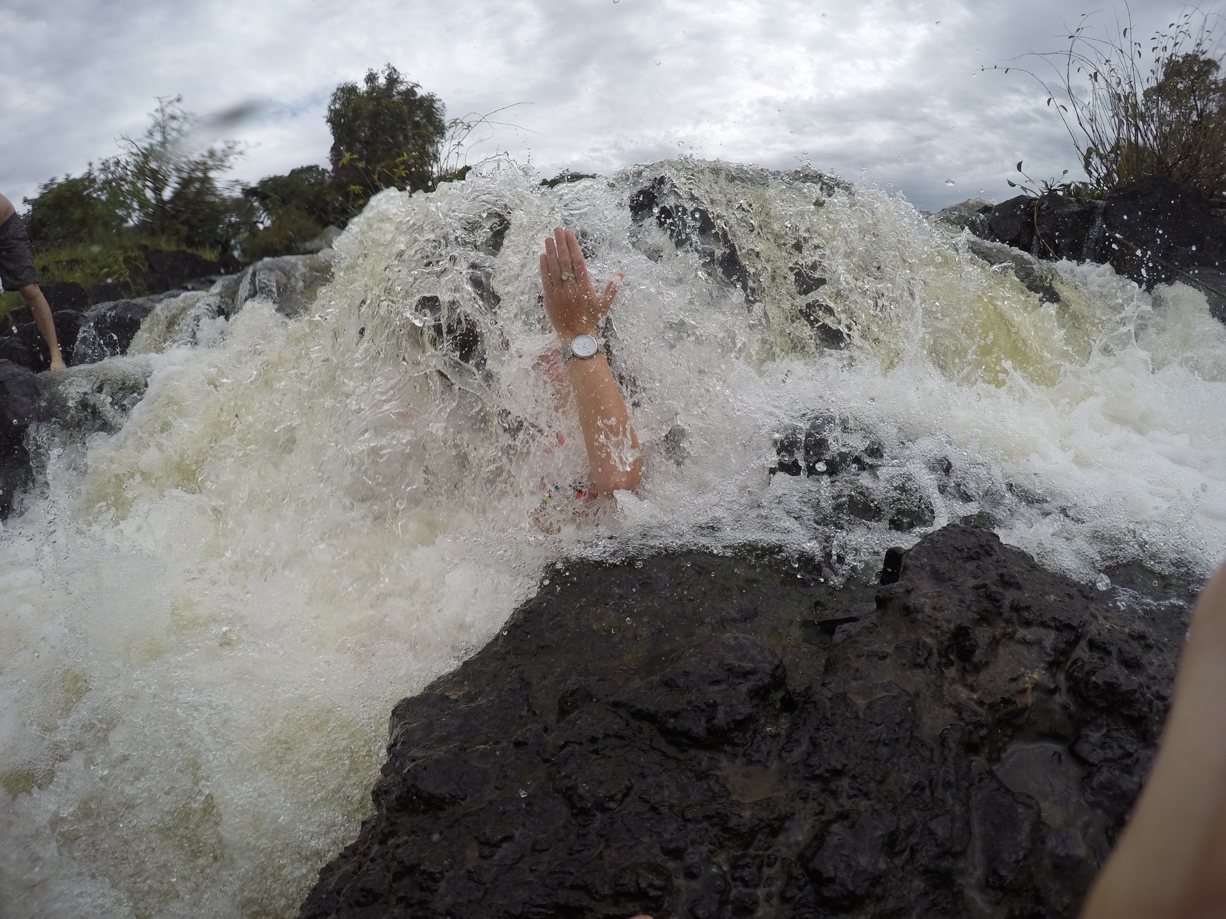 But there is a reason for the trek into the river. It was to get to Angel’s Pool. This is a naturally formed pool of water on the edge of Victoria Falls. It’s not as famous as it’s brother, Devil’s Pool, which is even closer to the edge and slightly more dangerous. However, the Devil’s Pool is not accessible during the high water season so our only choice was Angel’s Pool. Let me tell you, it was still scary as hell.