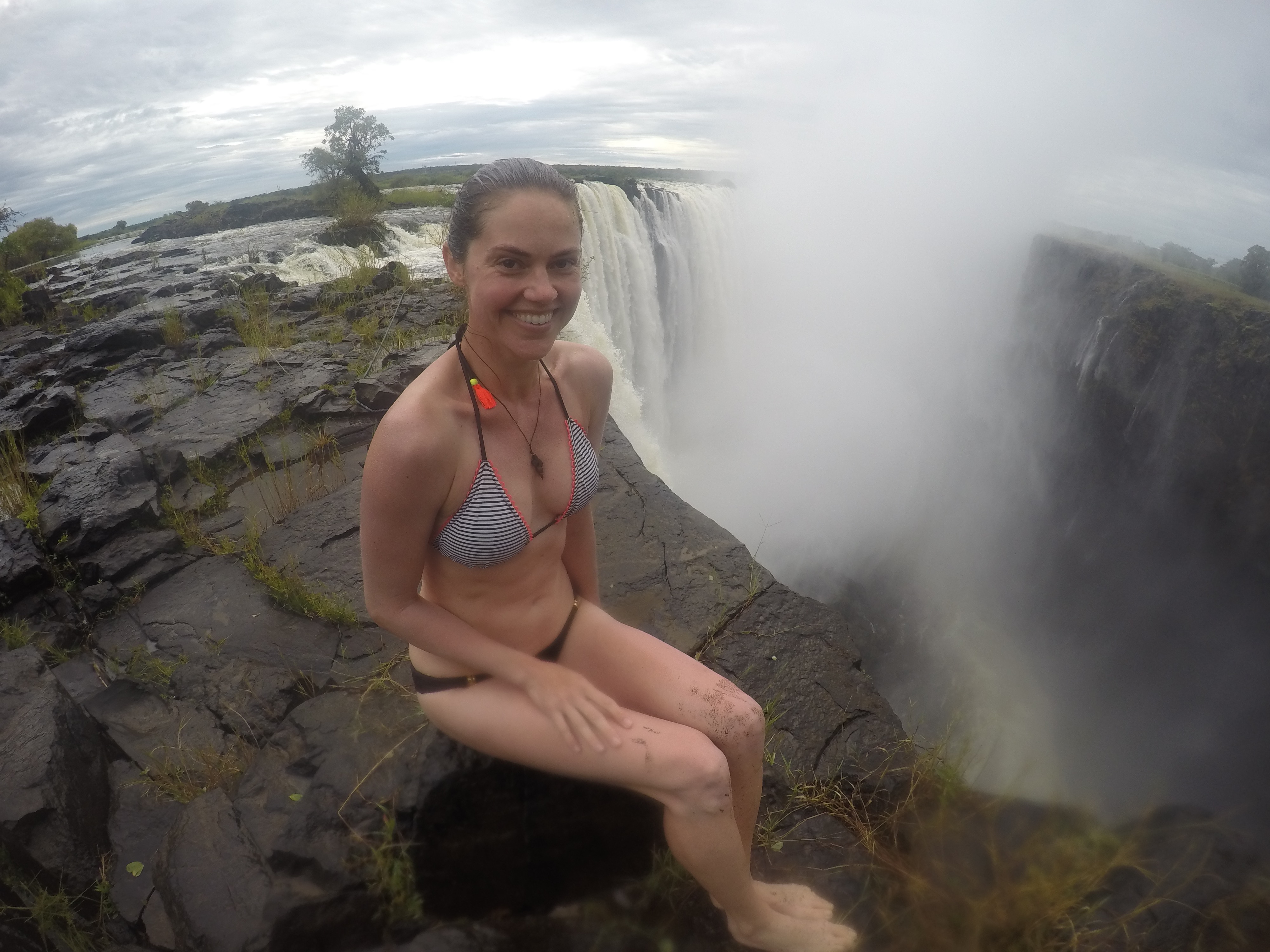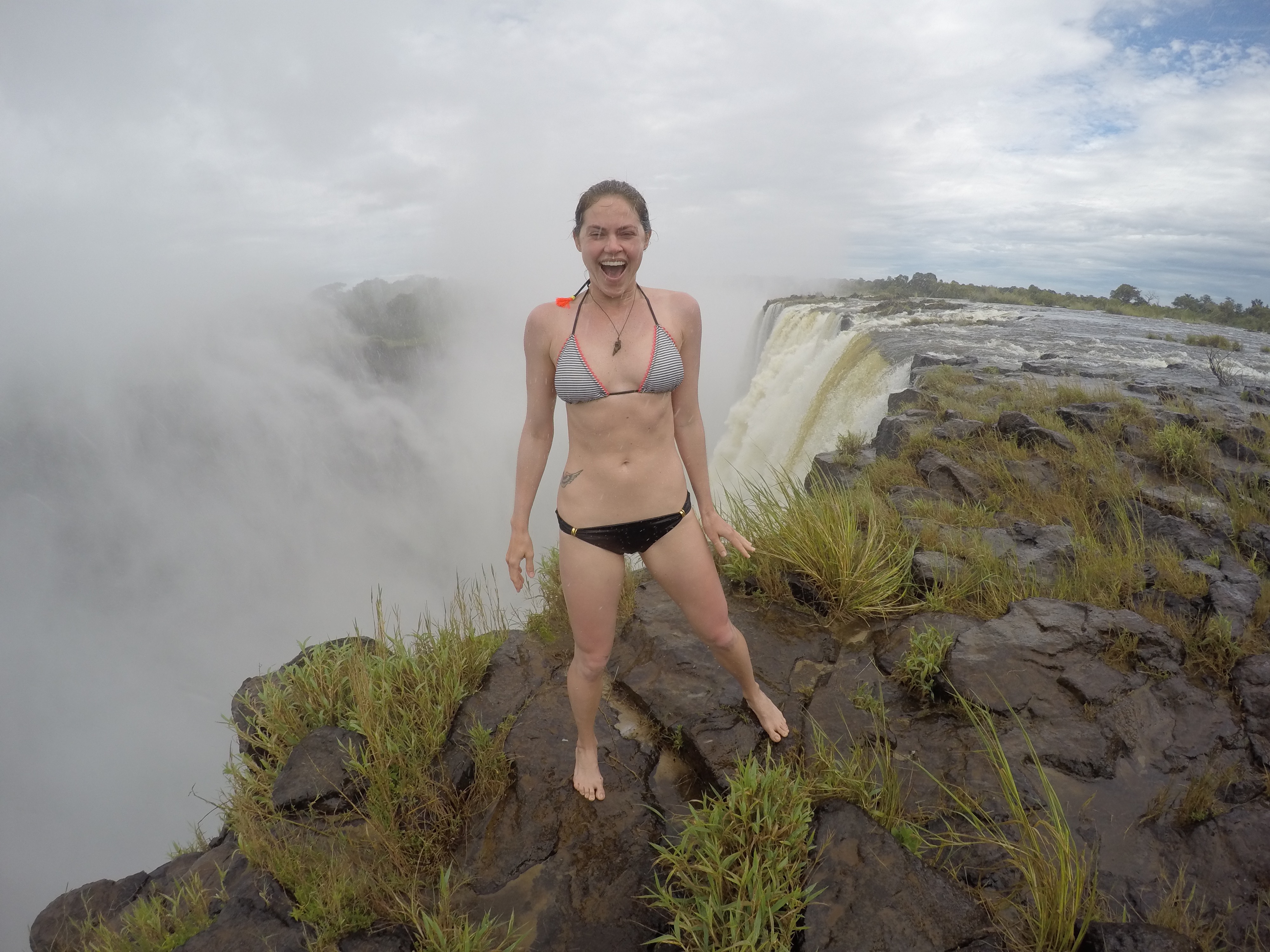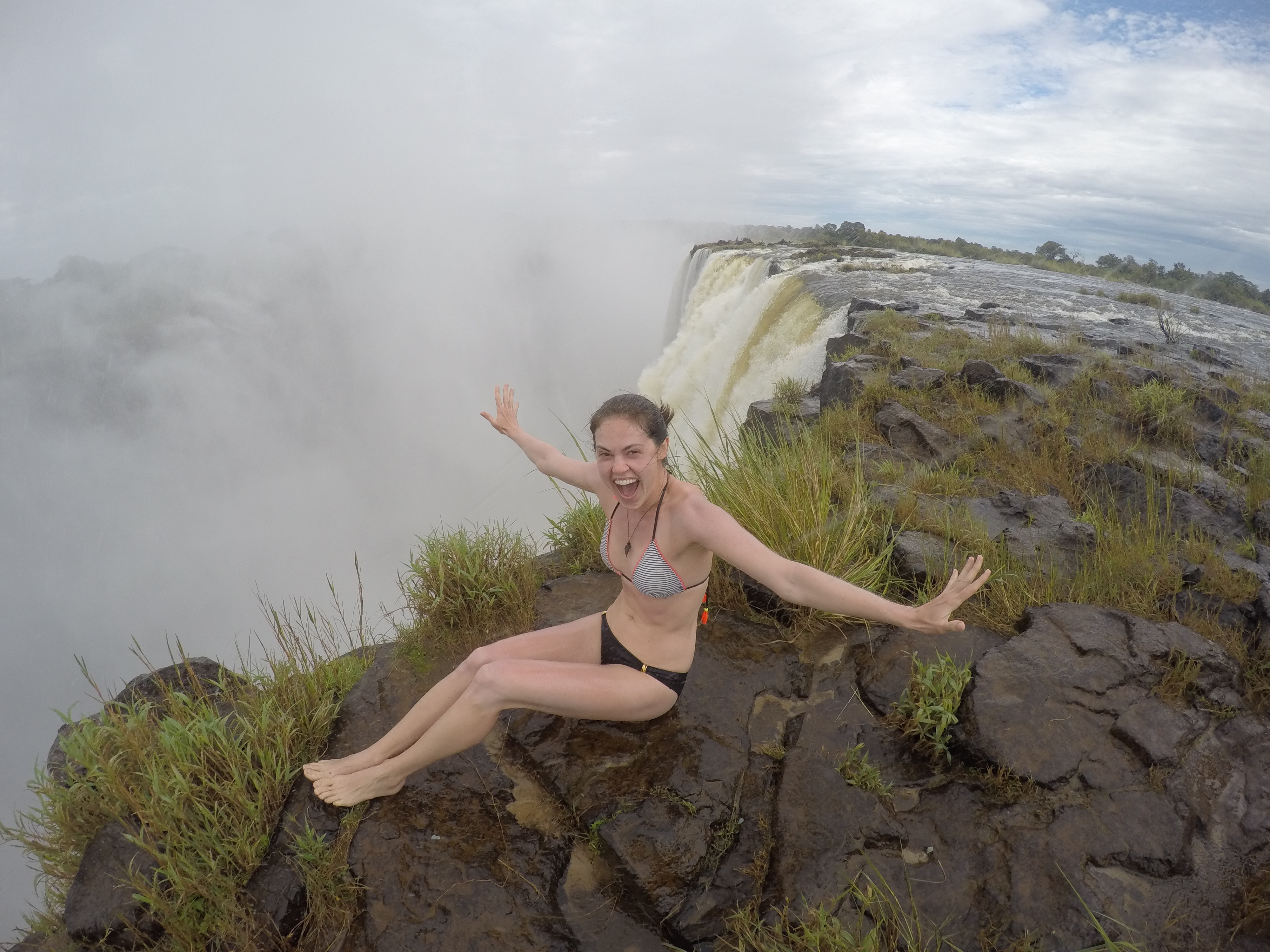 But there is a reason for the trek into the river. It was to get to Angel’s Pool. This is a naturally formed pool of water on the edge of Victoria Falls. It’s not as famous as it’s brother, Devil’s Pool, which is even closer to the edge and slightly more dangerous. However, the Devil’s Pool is not accessible during the high water season so our only choice was Angel’s Pool. Let me tell you, it was still scary as hell.