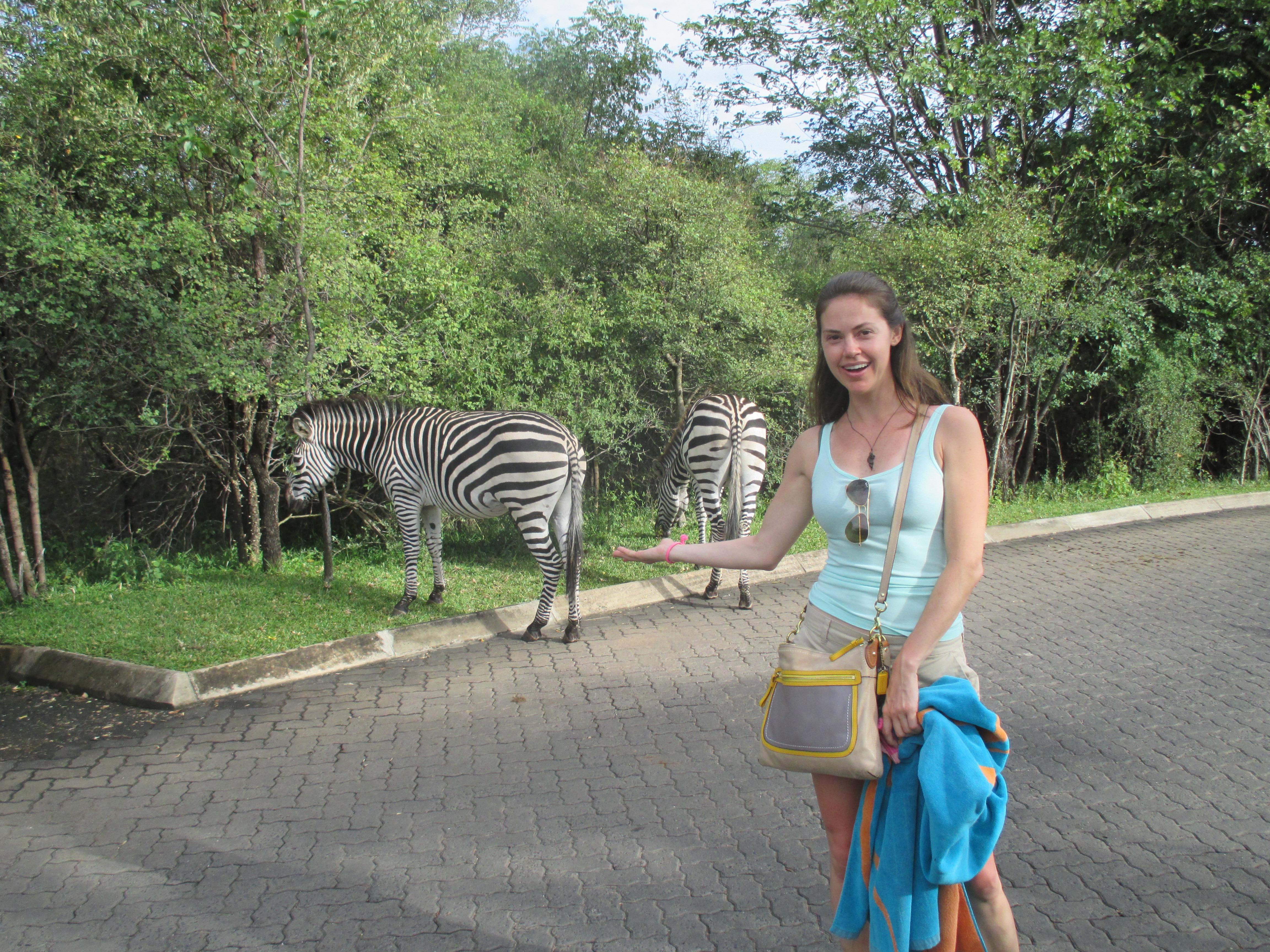 Upon walking onto the property of the Royal Livingstone we promptly bumped into three giraffe and two zebra who were peacefully grazing on the grounds. That’s a thing that never got old while being in Africa: seeing wildlife, whether in expected or unexpected places.