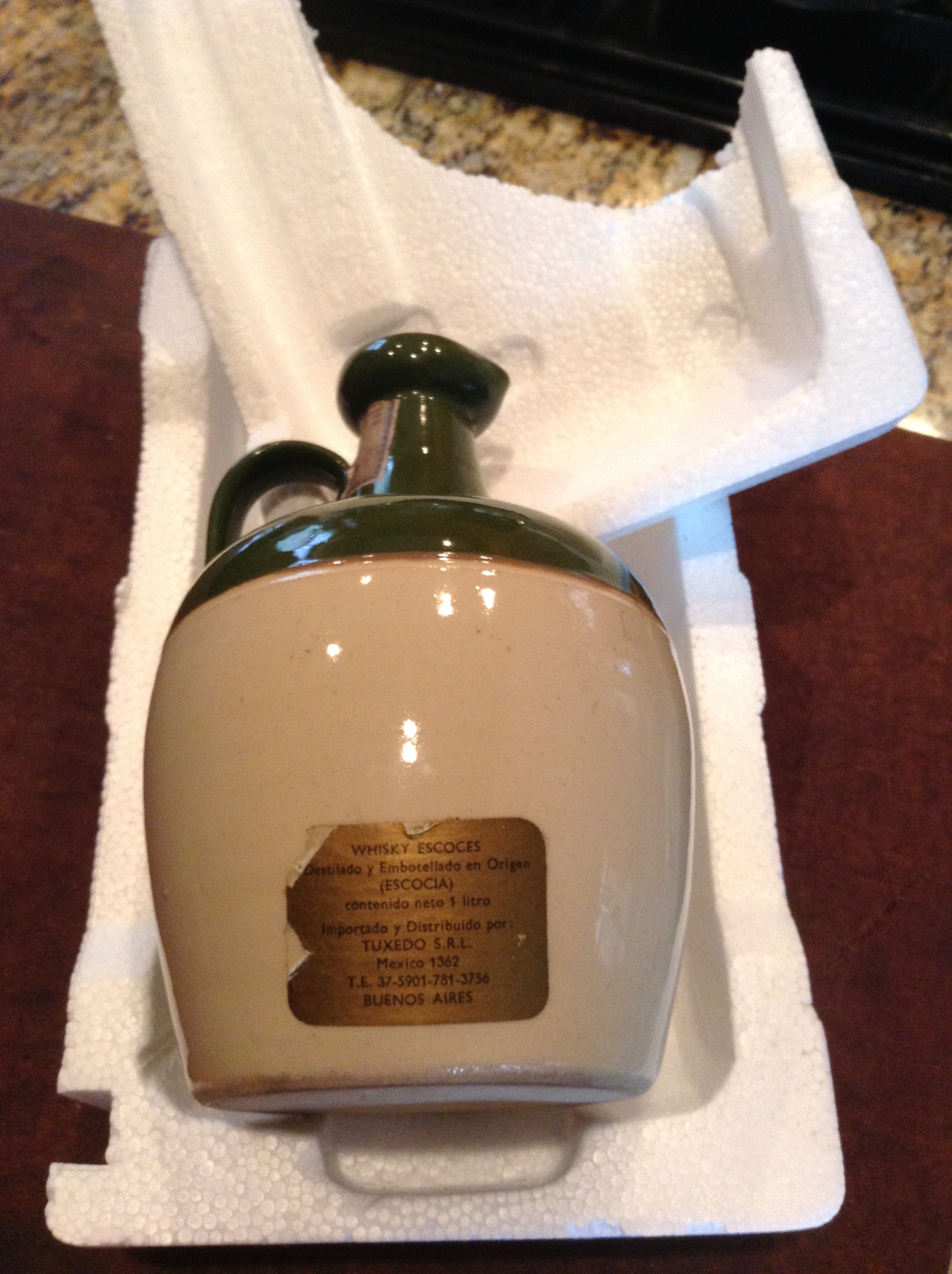 And lo and behold in a small flea market in Buenos Aires I came across a stall full of old ceramic liquor bottles! I spotted a beautiful light blue and cream colored tall bottle with a lovely seal stamped into the ceramic. I asked the lady who kept the stall how much it was, so ecstatic to finally find what I had been looking for for so long and that it was so beautiful, and was quickly deflated when she told me it was $100. Turns out the bottle was from a very rare shipment of liquor from who knows where with the Argentine flag colors from the 1800s and that’s why it cost what it did. Figures I would pick the most expensive bottle there to fall in love with. None of the other bottles were that interesting and just as I was starting to get dejected, I spotted a stout green and cream colored bottle. Tentatively I asked her how much it was and was overjoyed when she told me it was $10.
