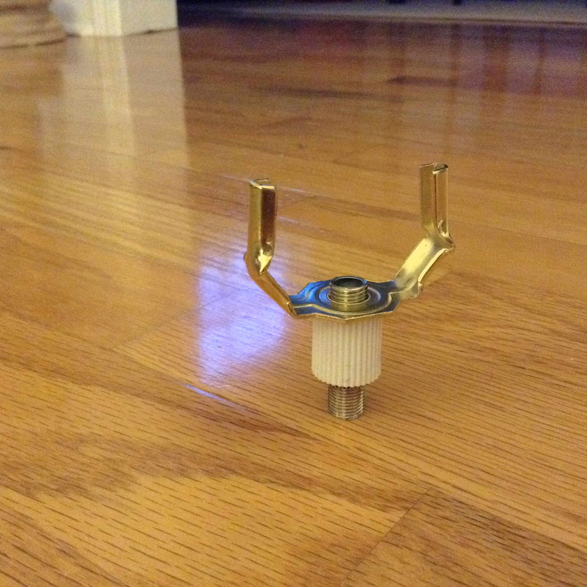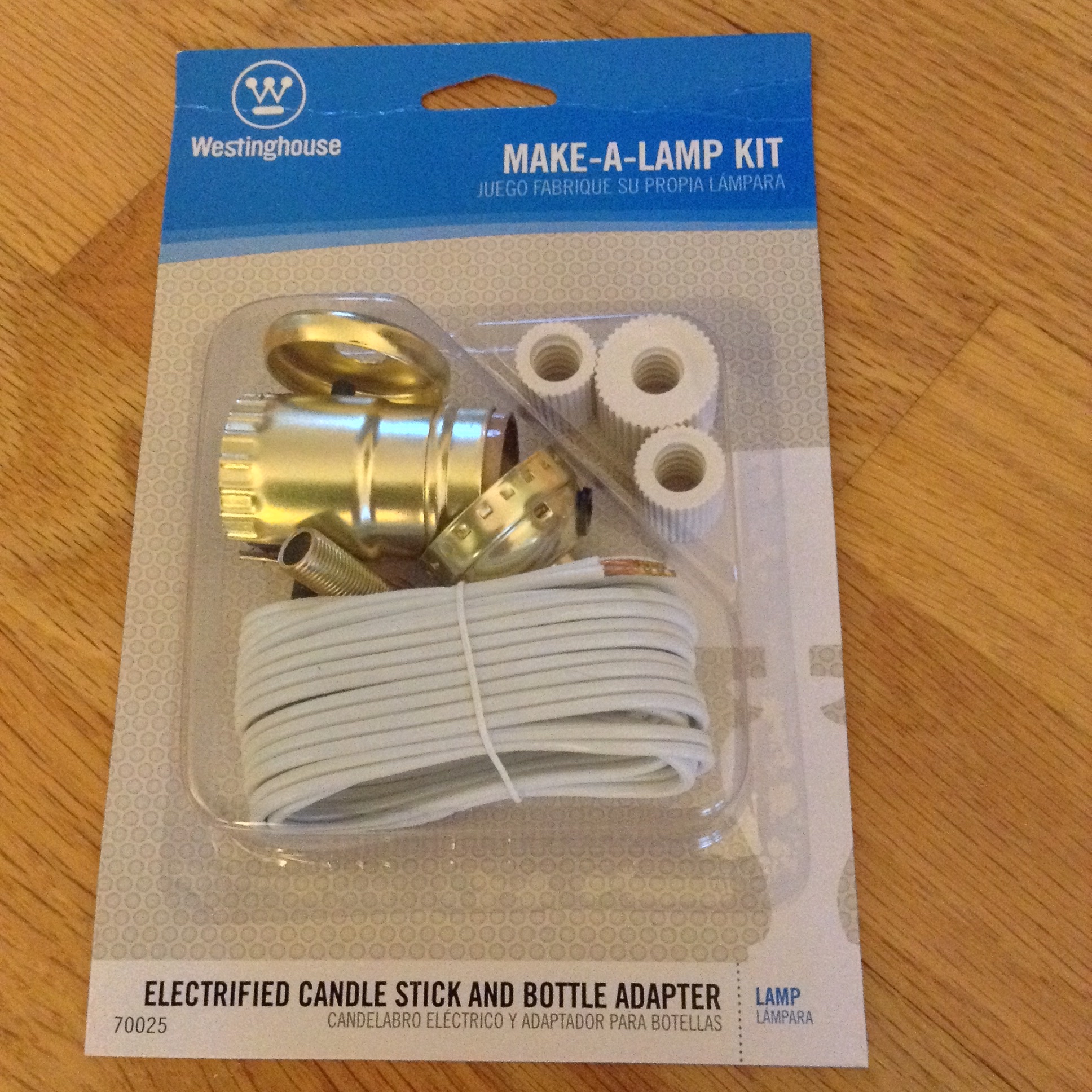 When I finally got through the next part was the electrical portion of building the lamp. I’d like to say I’m pretty handy and with my mom’s help she and I pretty much fixed up my condo when I bought it ourselves. But anything electrical my dad always handled for us. Whelp, my dad wasn’t there so I was on my own unless I wanted to wait till his next visit so I decided to just figure it out. I went to Home Depot and literally bought a “Make a Lamp Kit”.