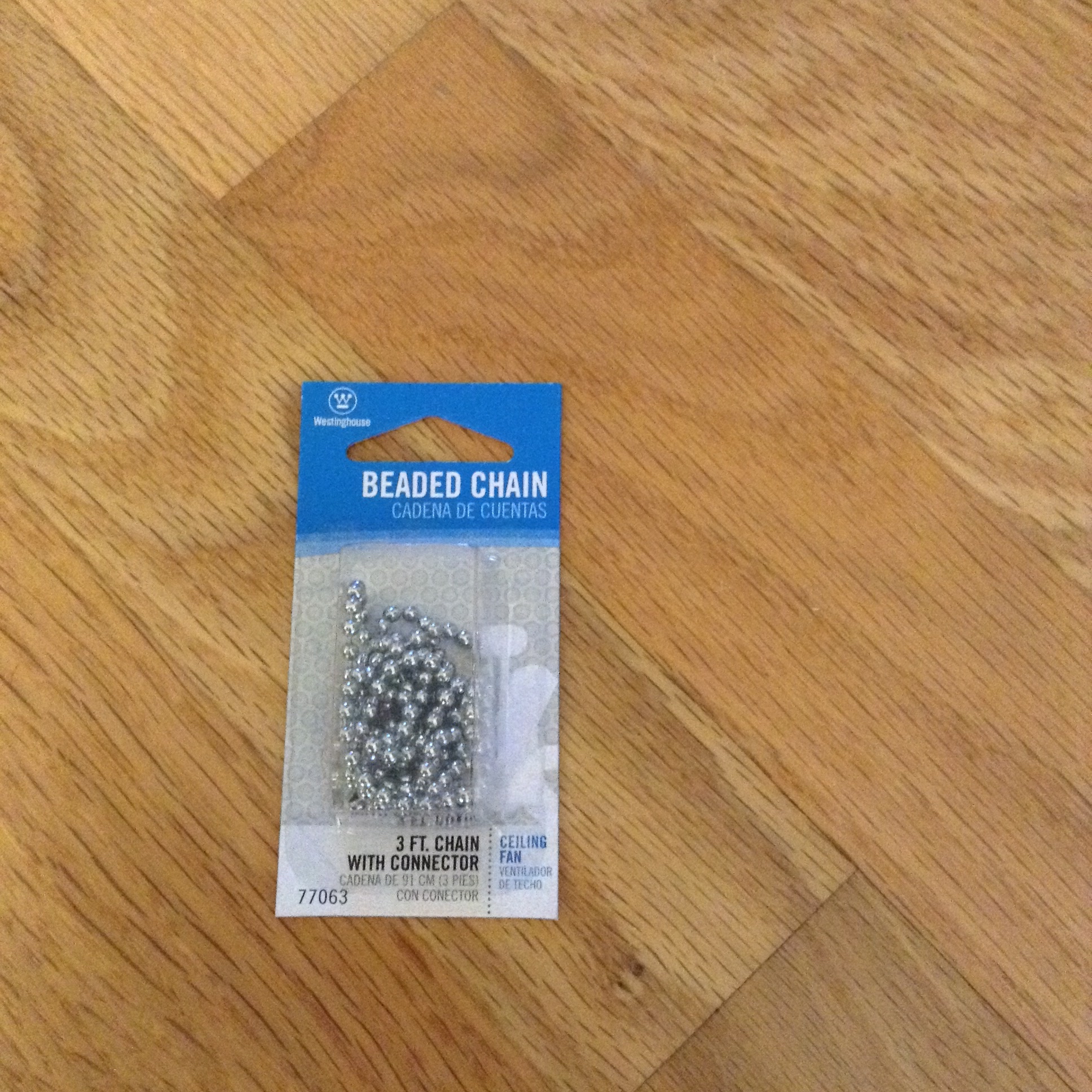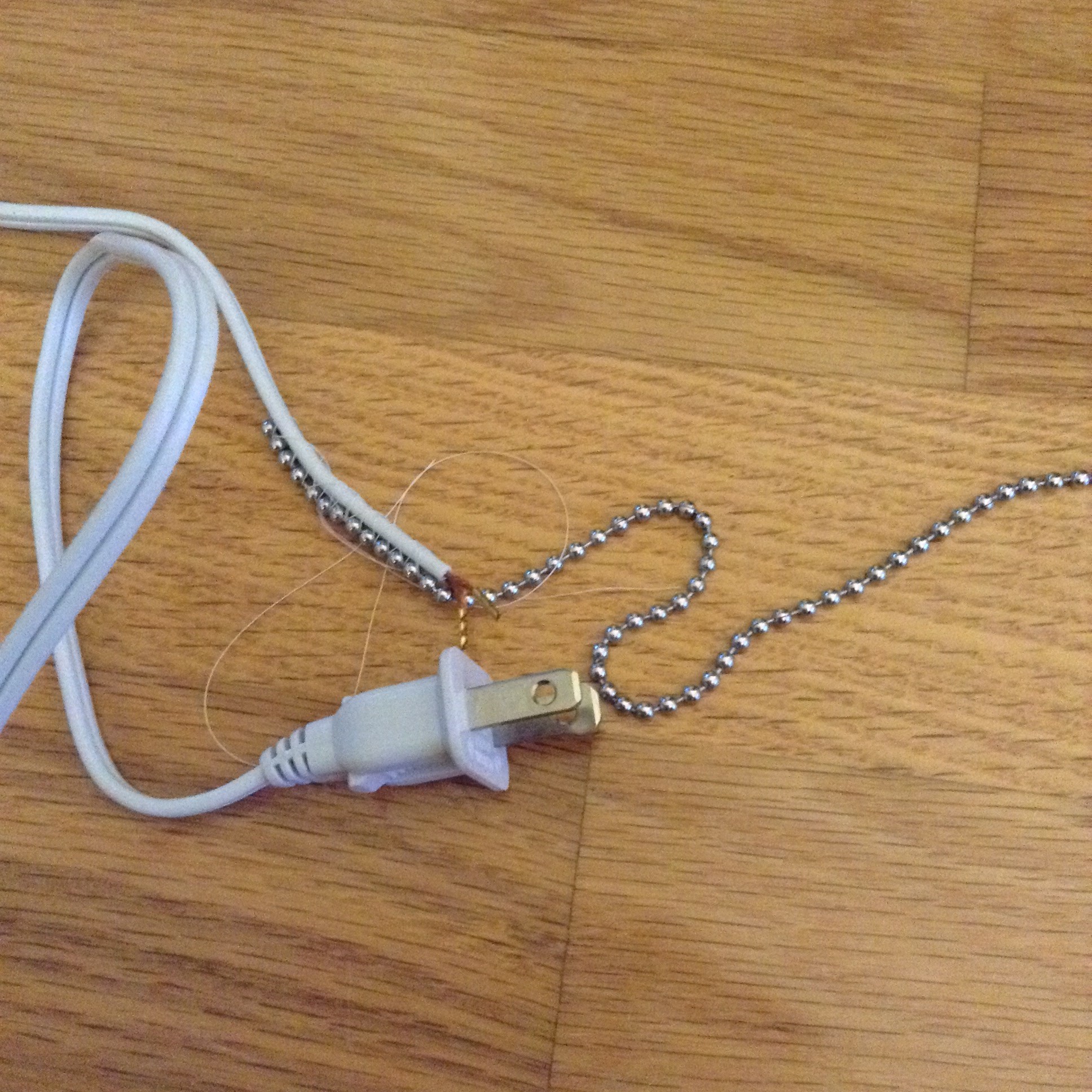 The beaded chain was so I could tie it to the electrical wire and run it through the hole I drilled so that it could fall out of the bottle opening so that I would be able to just simply pull the wire right through.