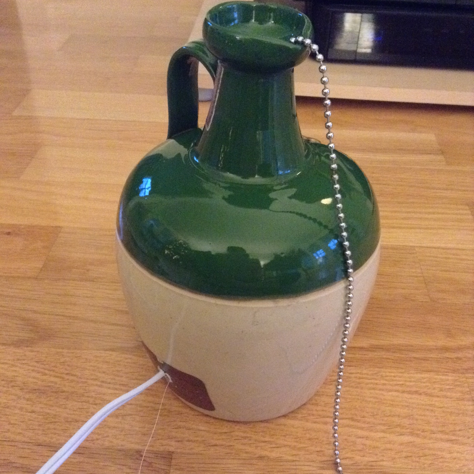 Now as I stated before I don’t love whiskey, but I did like the idea of turning an old timey whiskey jug into a lamp. I’m talking about the ones from way back in the day that were ceramic. You know what I’m talking about. Like the kind Johnny Depp would drink out of in Pirates of the Caribbean if he had been drinking whiskey instead of rum. Like the jugs with the tiny little handles so you could hook one figure in and just upend the whole bottle right down your throat. Or so I imagine that’s what swashbuckling roughians did. Anyway, that would make the perfect lamp for my little bar in my girly little condo.