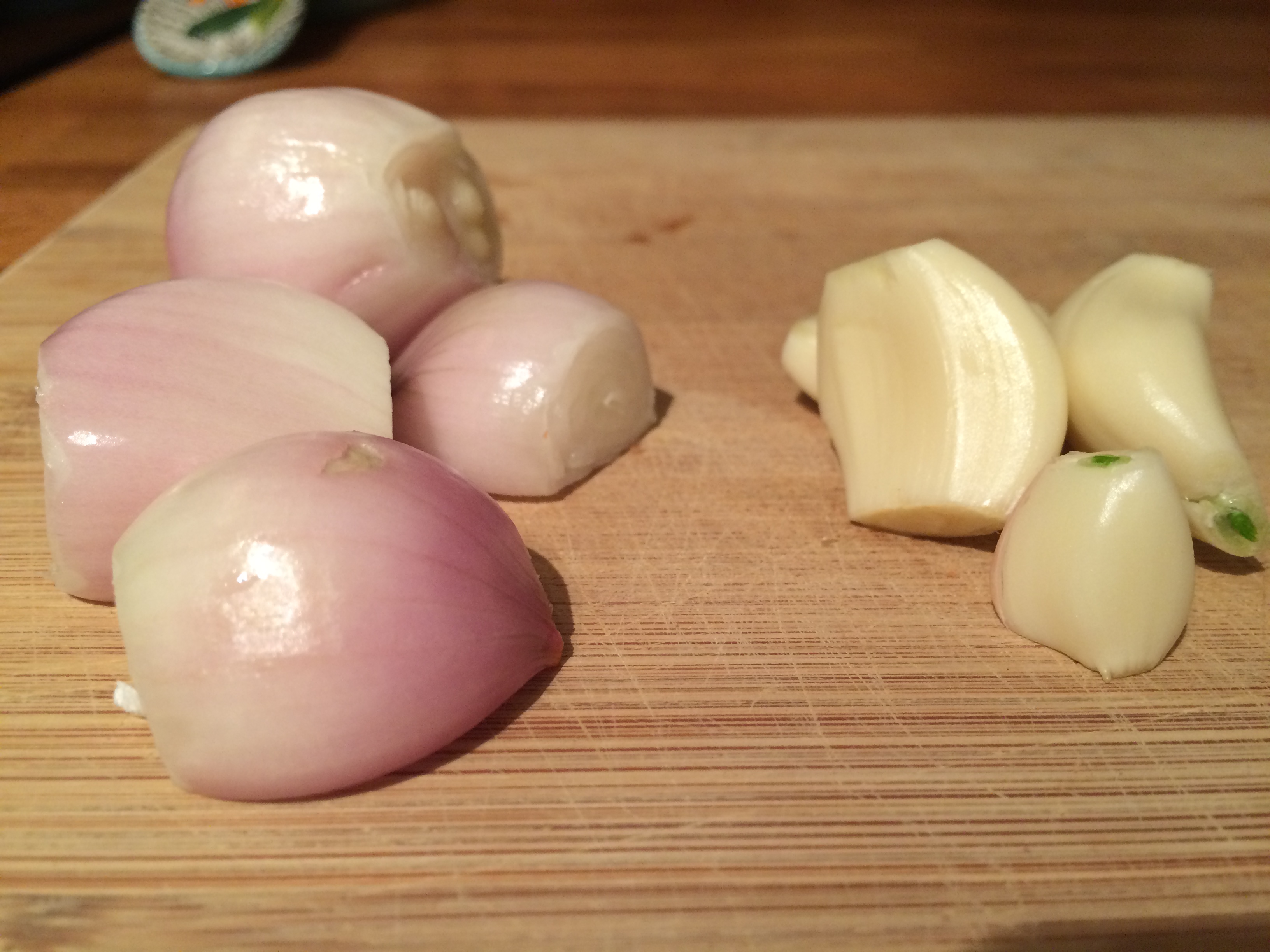 - In a large pot, heat 1 tablespoon of olive oil and add the garlic and shallots. Slowly cook them over medium-low heat, being careful not to burn them, for about 3-4 minutes. Lower the heat if needed. I have found cooking on an electric stovetop and gas stovetop to be extremely different when it comes to temperature.