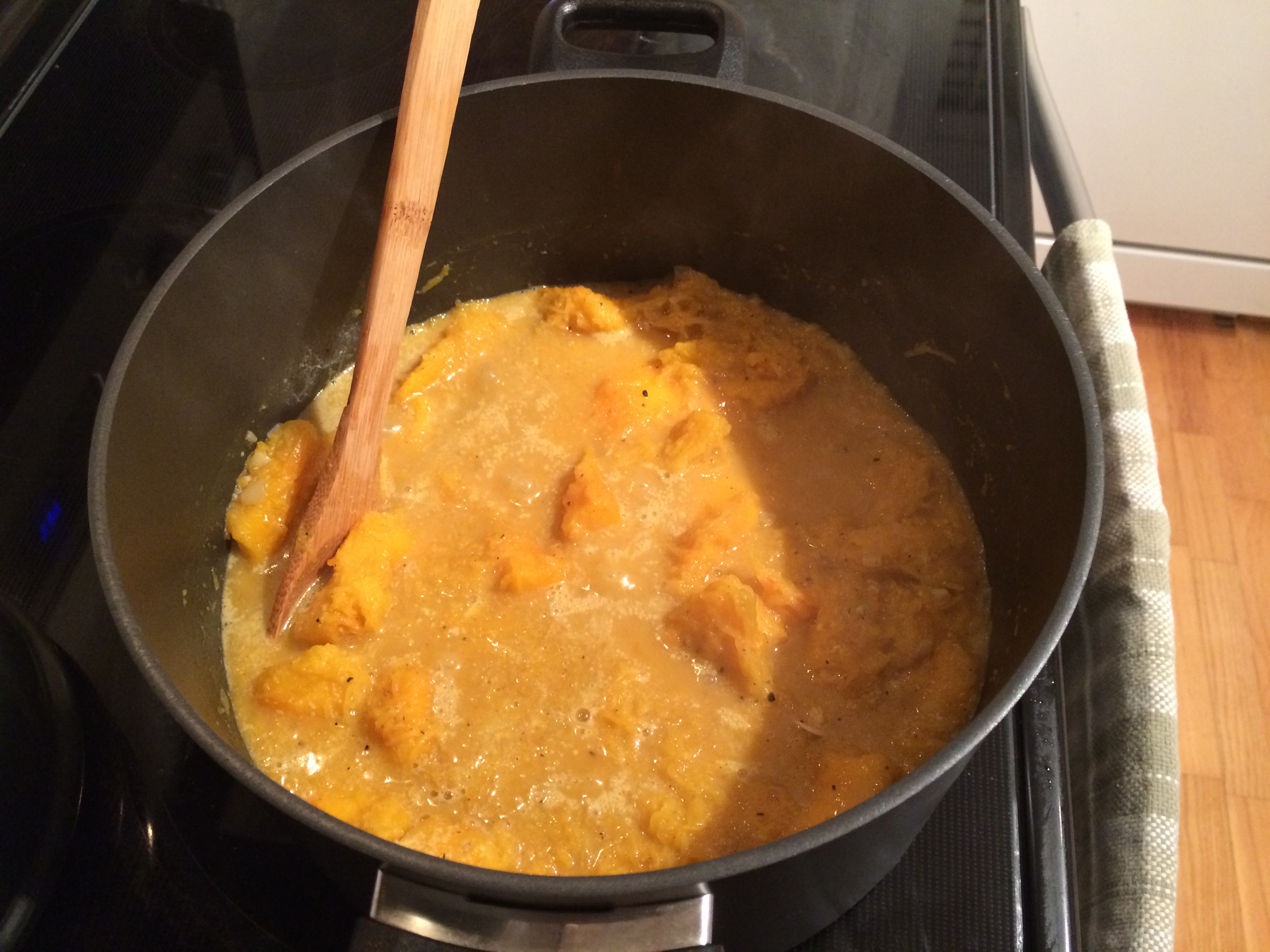 After blending, put purred pumpkin mixture back on the stove top for a few minutes. Add more seasoning to taste if you think it’s needed.