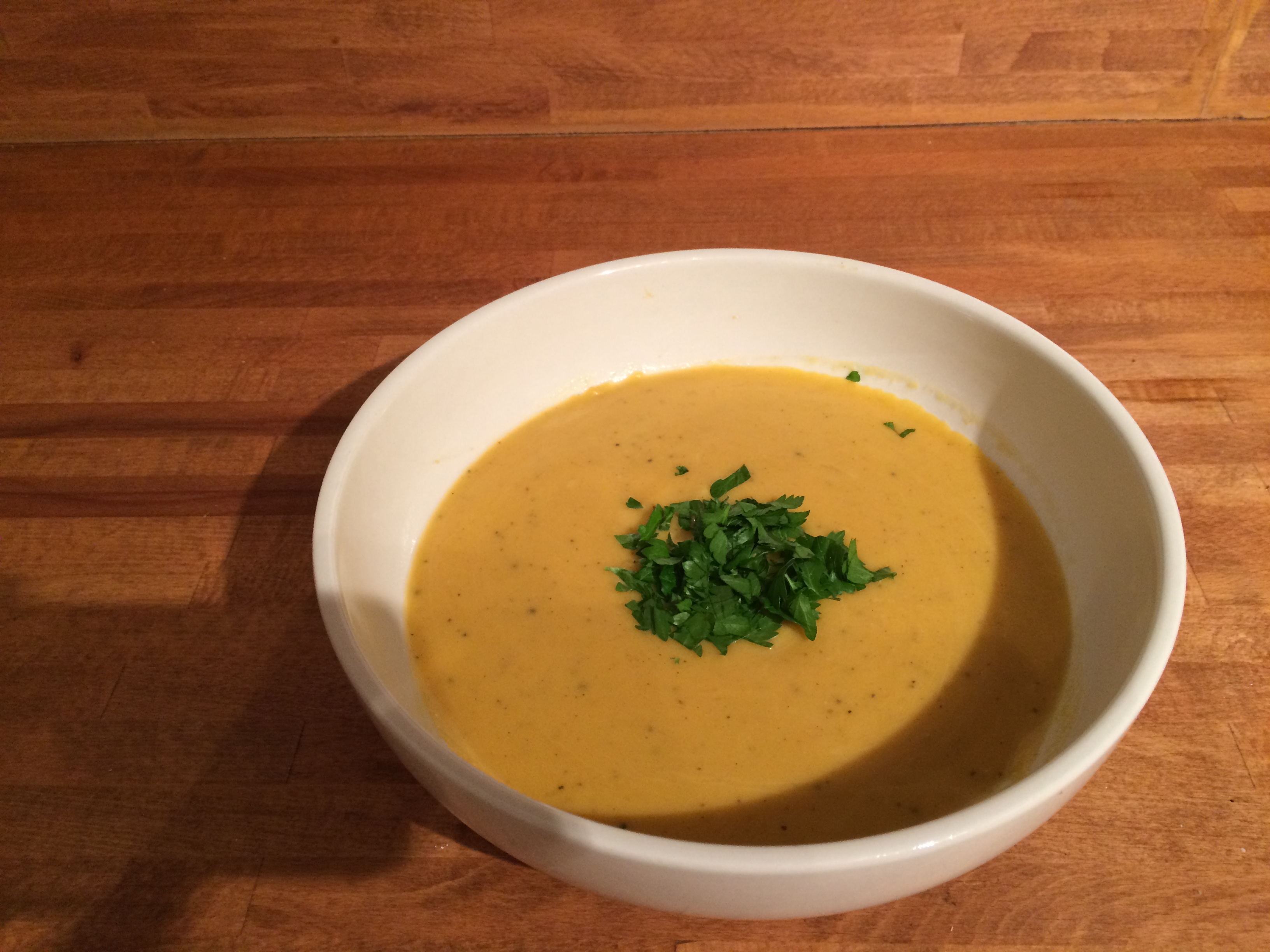 The soup is easy to make, though a couple of the steps are a bit time consuming, and the pumpkin needs to roast for almost an hour, so give yourself time for this. It’s great reheated so you can make it whenever you have some free time and eat it later.
