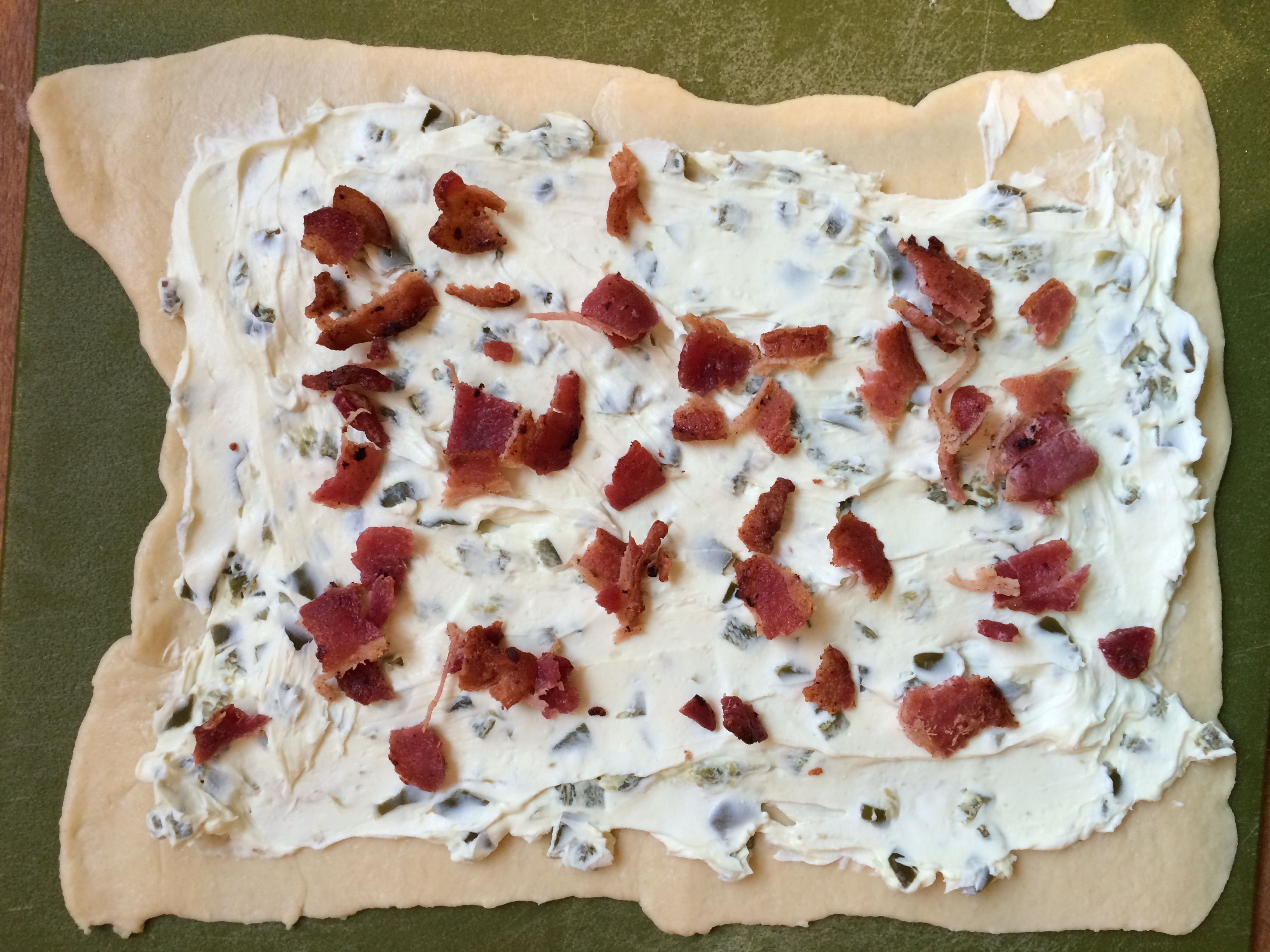 I get a lot of my ideas from other people’s recipes. At this point, especially with Pinterest, it’s probably really hard to be 100% original. Even when I think I have an original recipe, then I will find something similar online. So this pinwheel recipe I took from Tasty Kitchen. While I love her blog and respect what she does, this recipe was a little wordy and it took me a few read throughs to figure out some of the steps. I think I’ve made it easier to understand by adding my step by step pictures below. However, if you want to follow along with the original recipe, please happily do so!