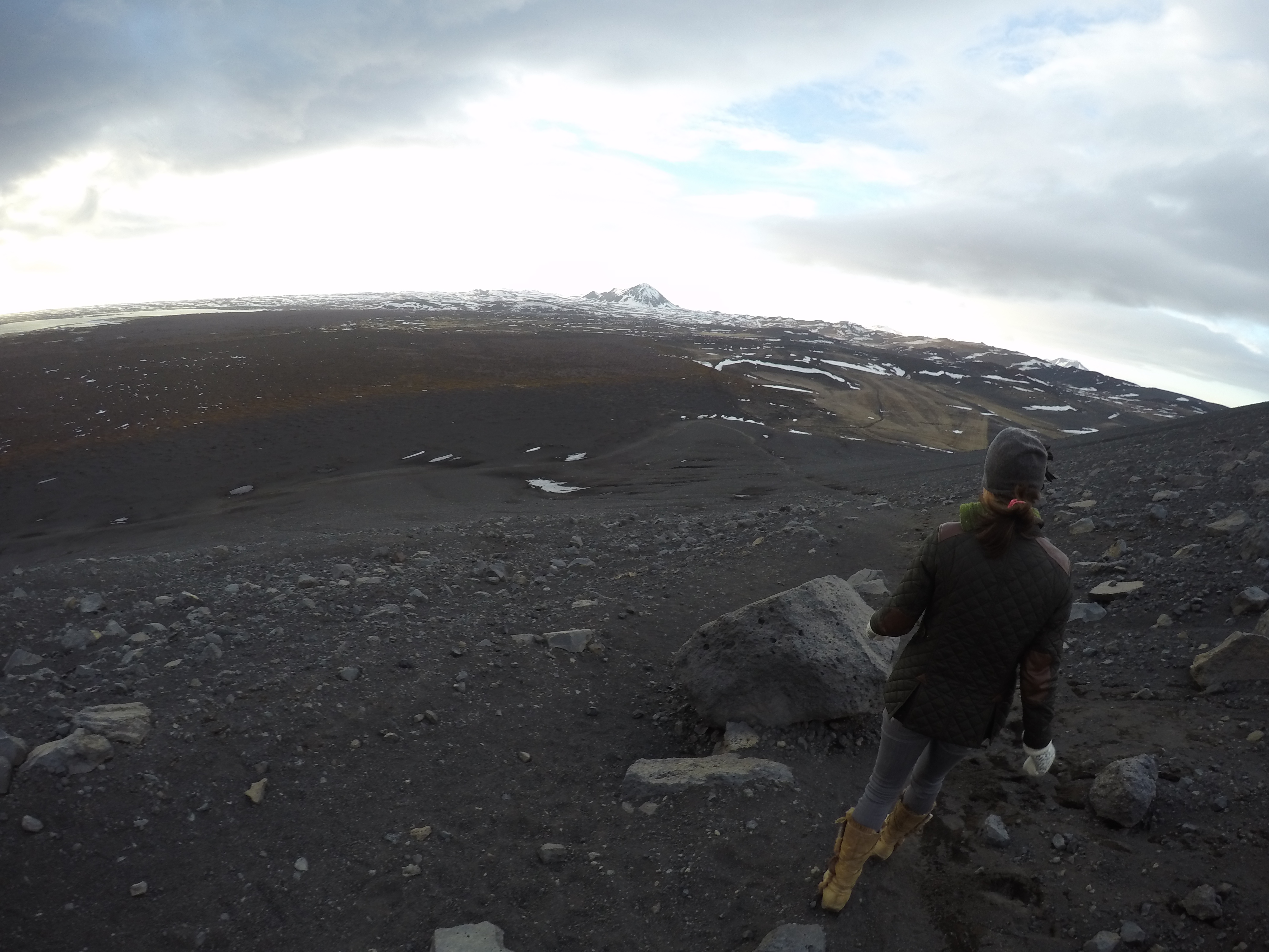 Me being me, I saw the opportunity for a hike and some extra exercise so I convinced Marc to climb the desolate (how many times can I use this word to describe places in Iceland?), rocky, black volcano before walking to the springs.