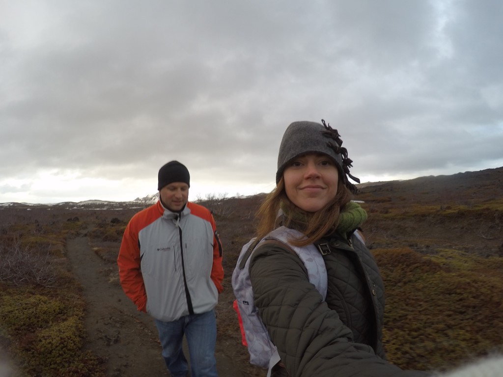 As always there was no direct and easy way to get there, so we veered off course and had to make it through some gravel roads before finally ending up at the base of a volcano crater called Krafla. There were a couple of signs and a flattened area where one could potentially park a car so we took it as a good sign that we were at the right place.