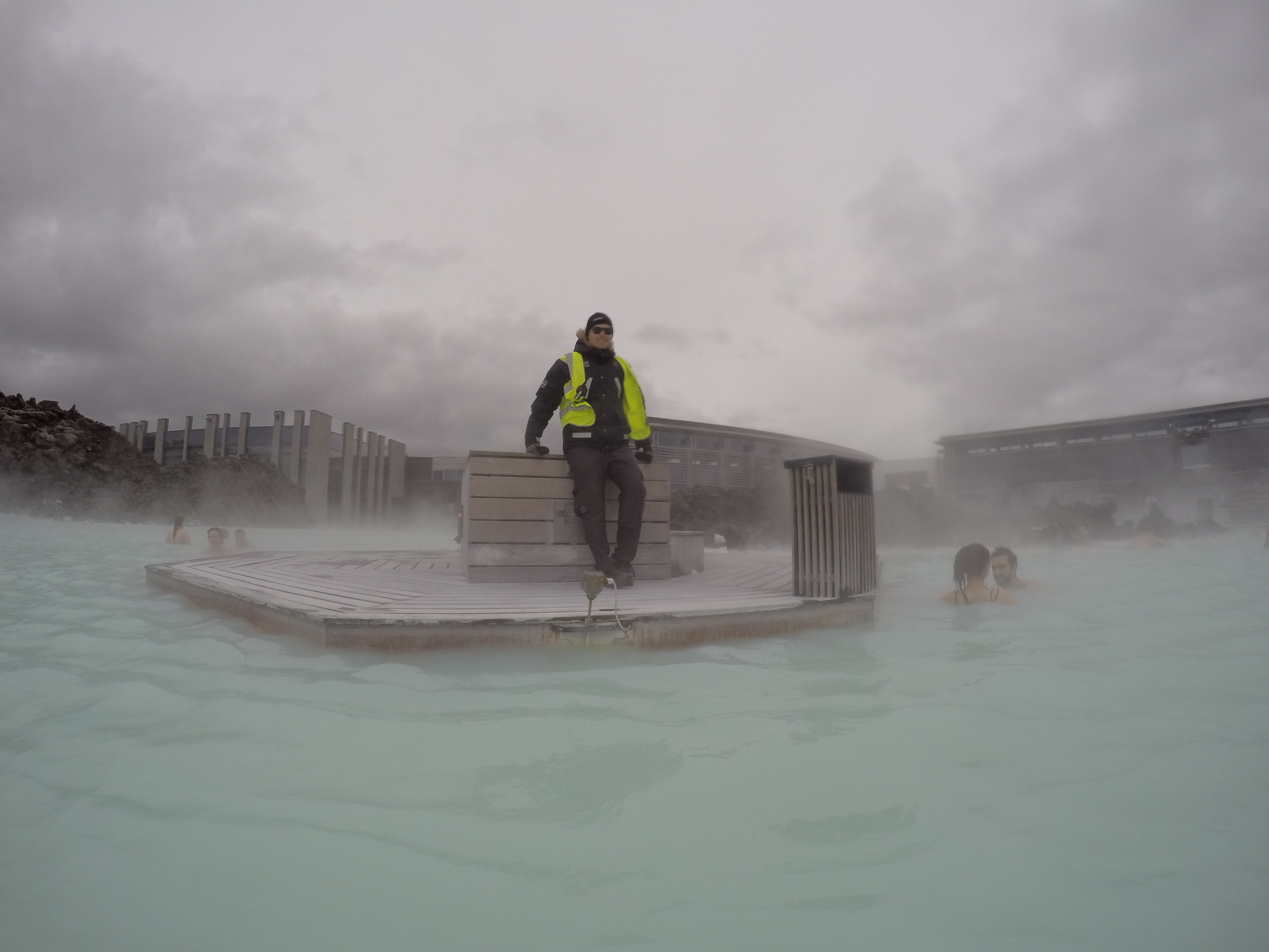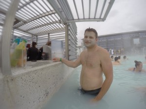 Marc was waiting for me at the entrance to the waters. I had been worried about being out in the freezing cold in only a swimsuit before getting in the water, but I shouldn’t have because the Blue Lagoon is very well designed. We were in a warm, glass enclosed room before taking the steps into the hot water (inner pool). From there we took a side door in the water that lead us out to the open air larger pools.