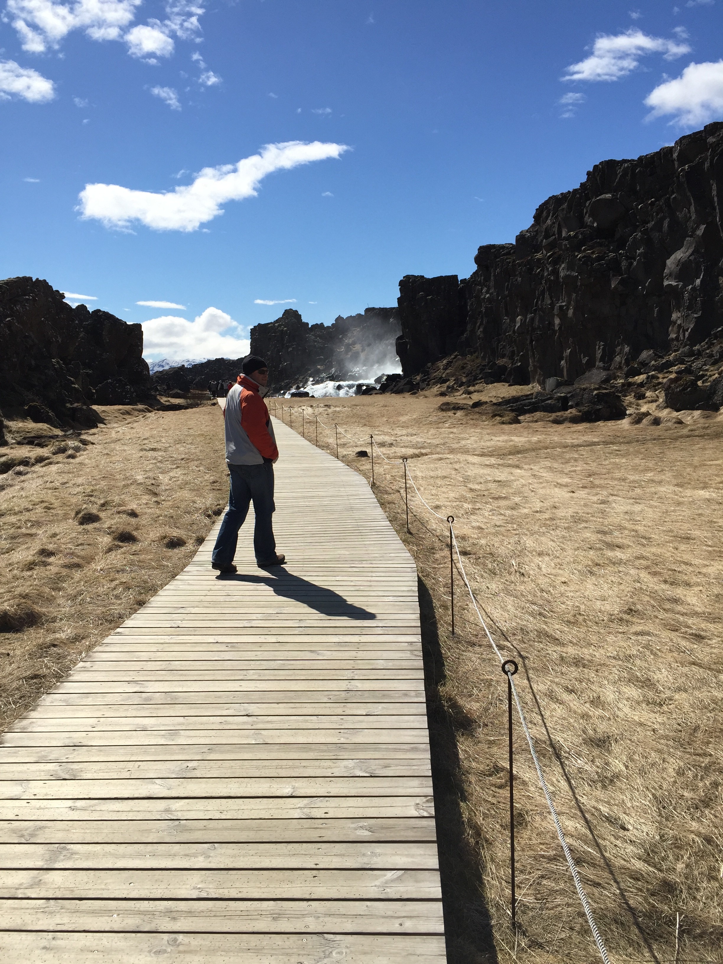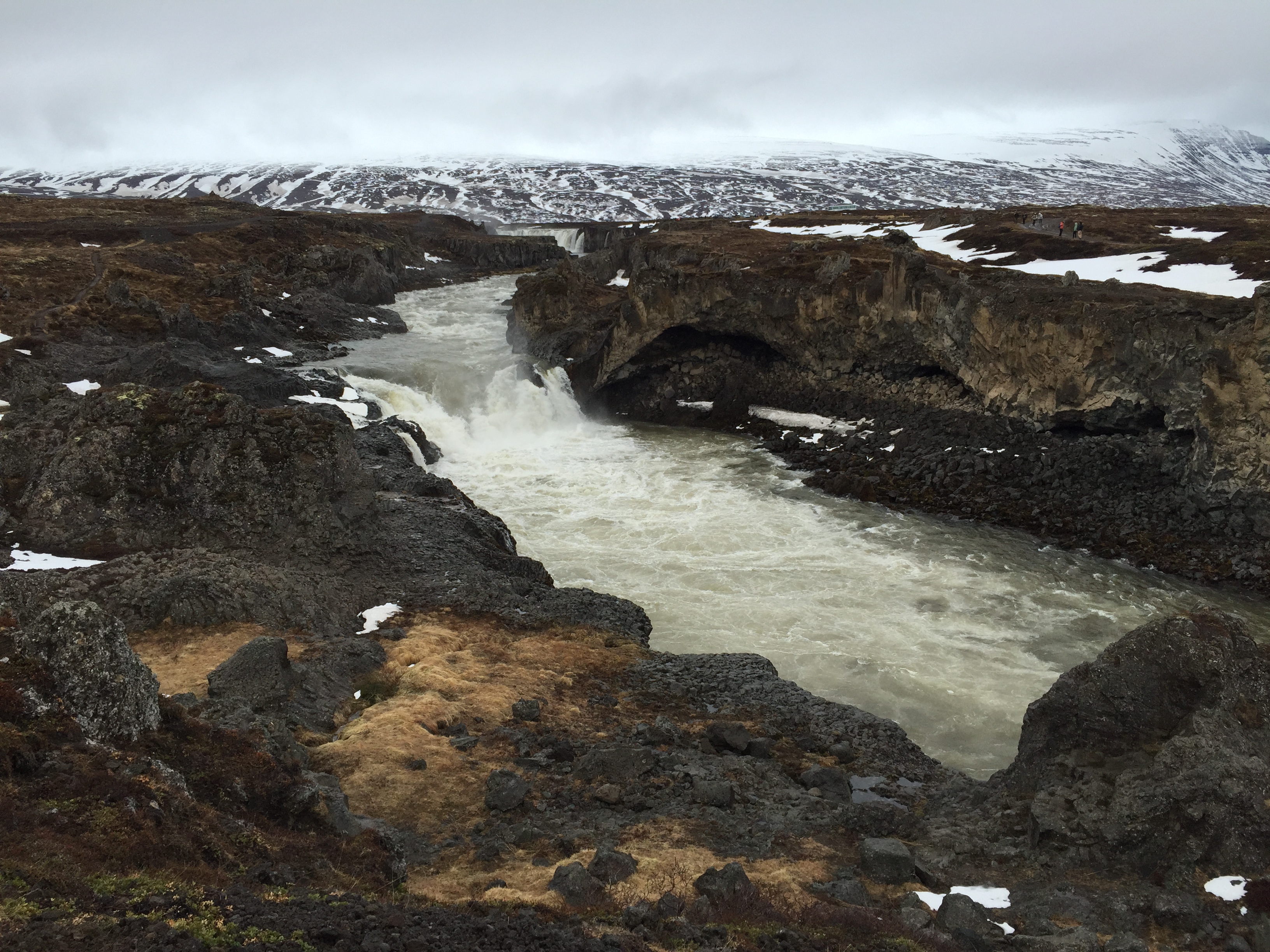 The next morning we got up and walked across the street to the beautiful Godafoss waterfalls. It’s really amazing how little restrictions there are in Iceland.