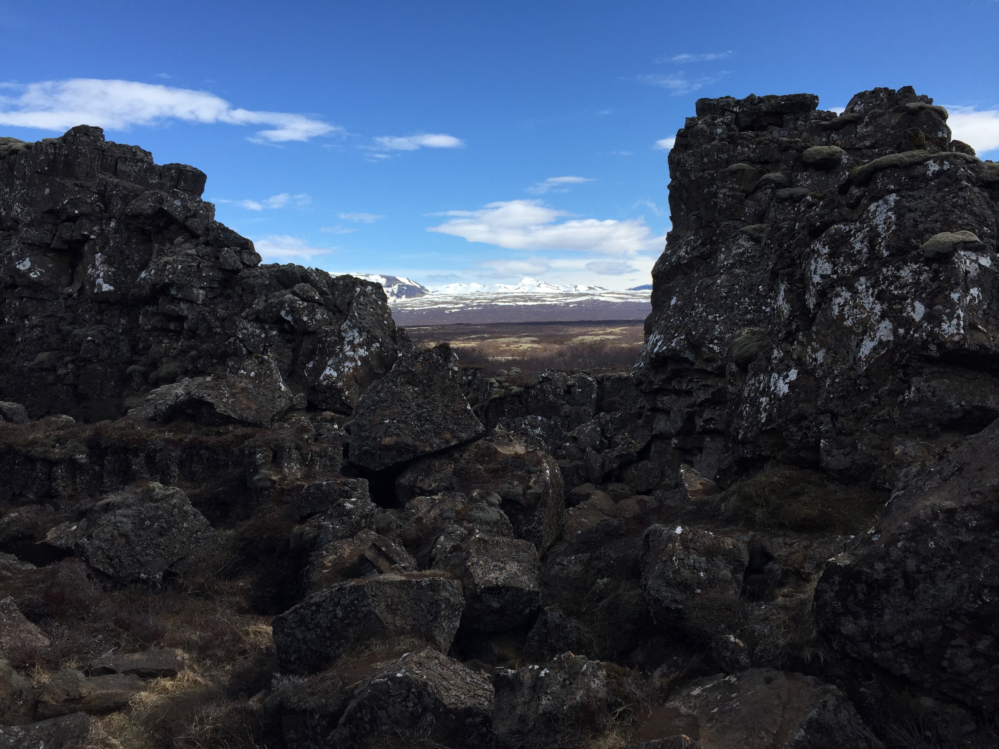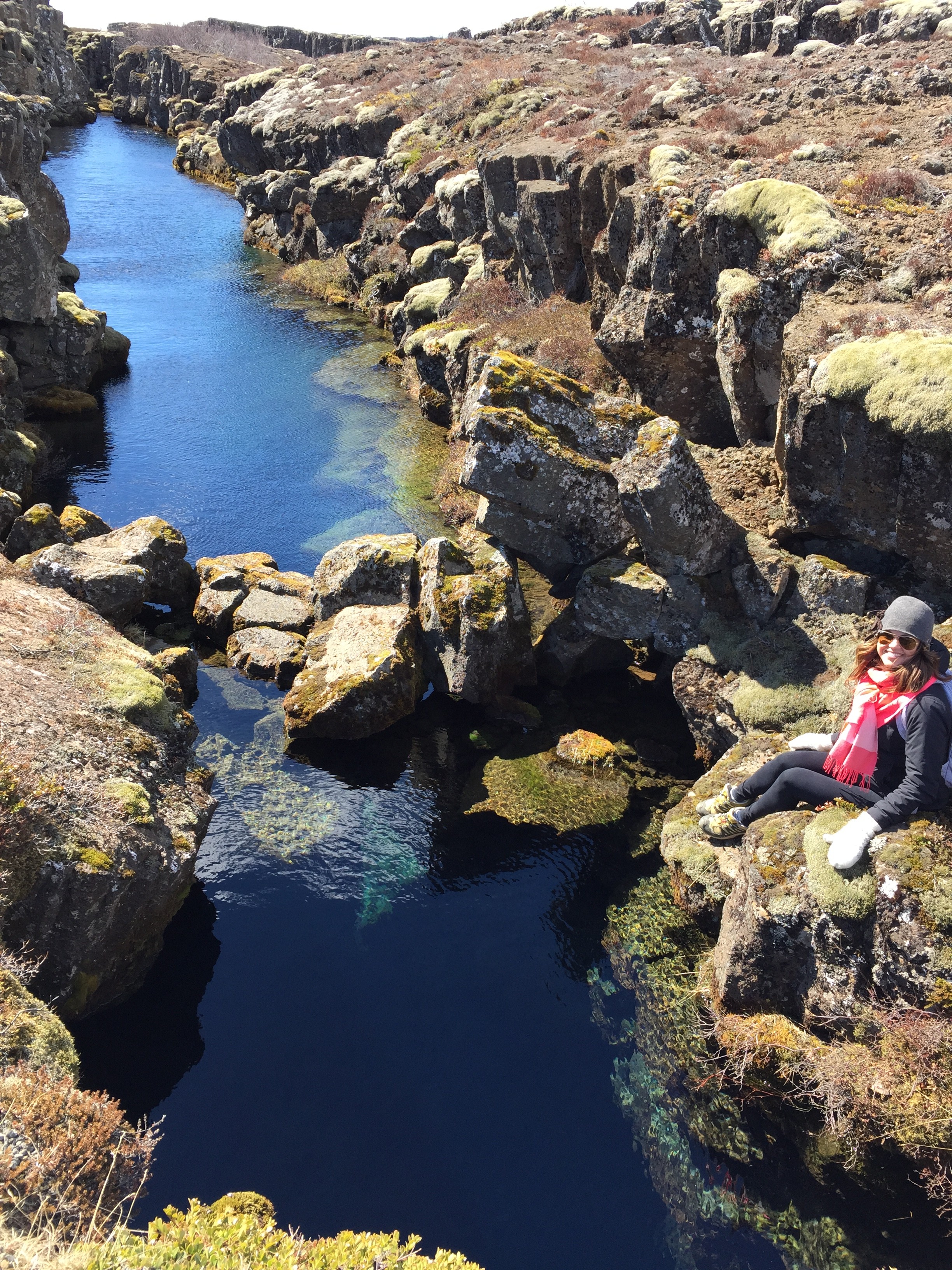 We walked along the old ruins of the parliament gatherings from the 900s, stopping at one run down, grass covered remains of a stone foundation for some hot chocolate. From there we walked through (more) lava fields suddenly arriving at a split in the land with the most beautiful, crystal blue water. The water was so clear you could see 30-40ft down to the bottom of this crevice.
