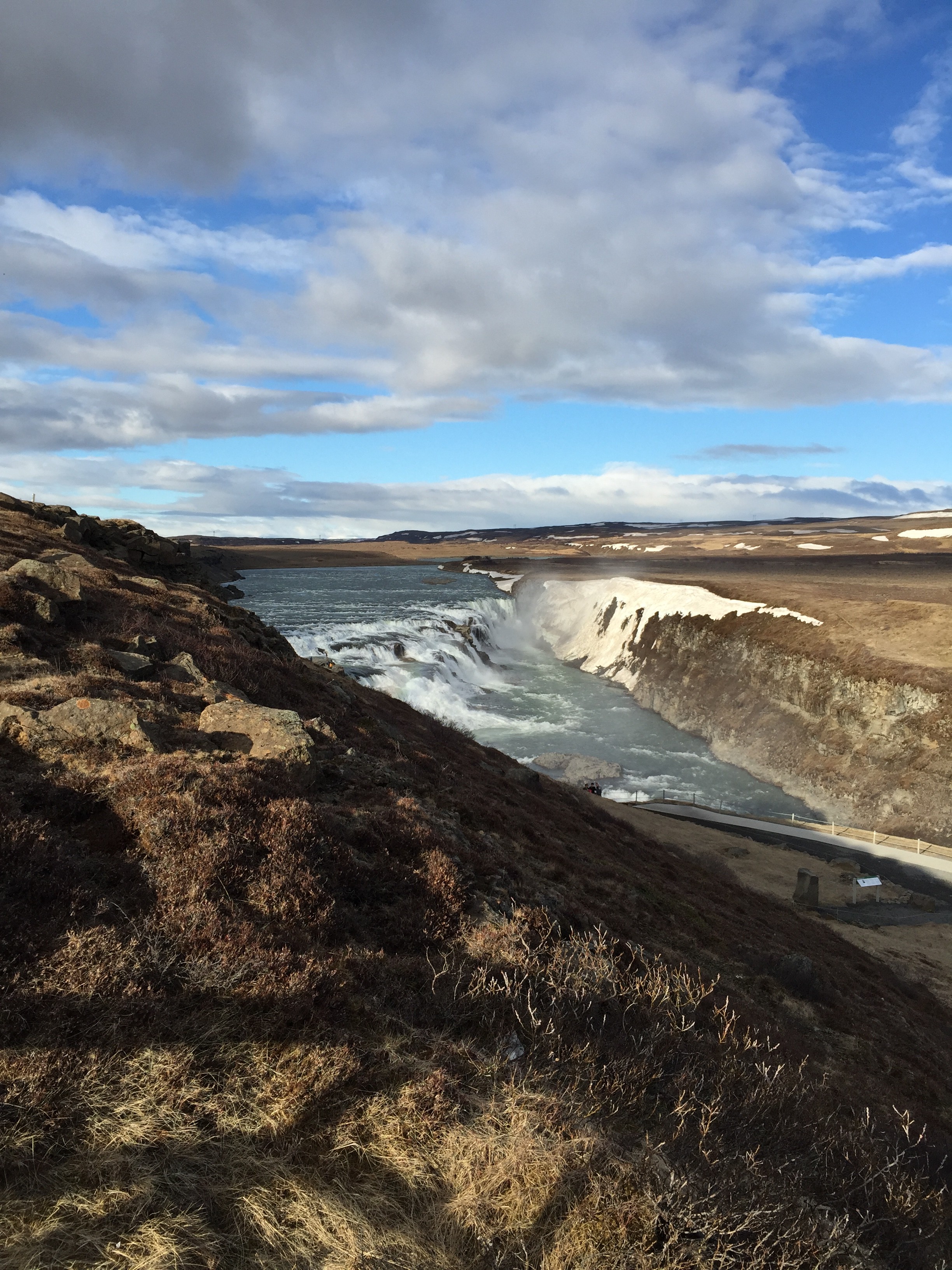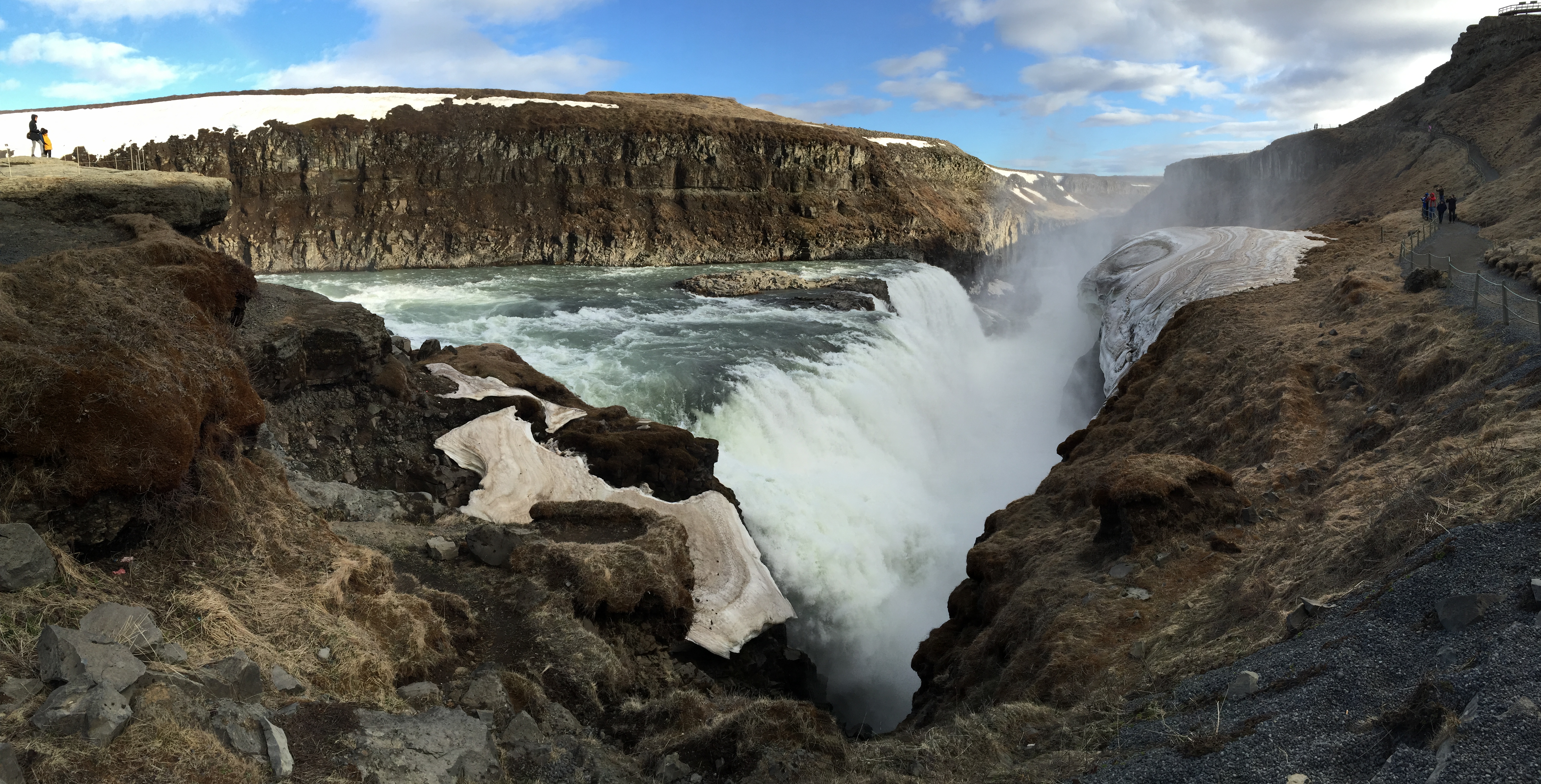 Moving on to the beautiful, magnificent and huge Gullfoss! It’s a two-tiered waterfall with so much force that for years in the early 20th century many people wanted to use it to generate electricity. Thankfully conservation won out and it’s been nationally owned and protected ever since.