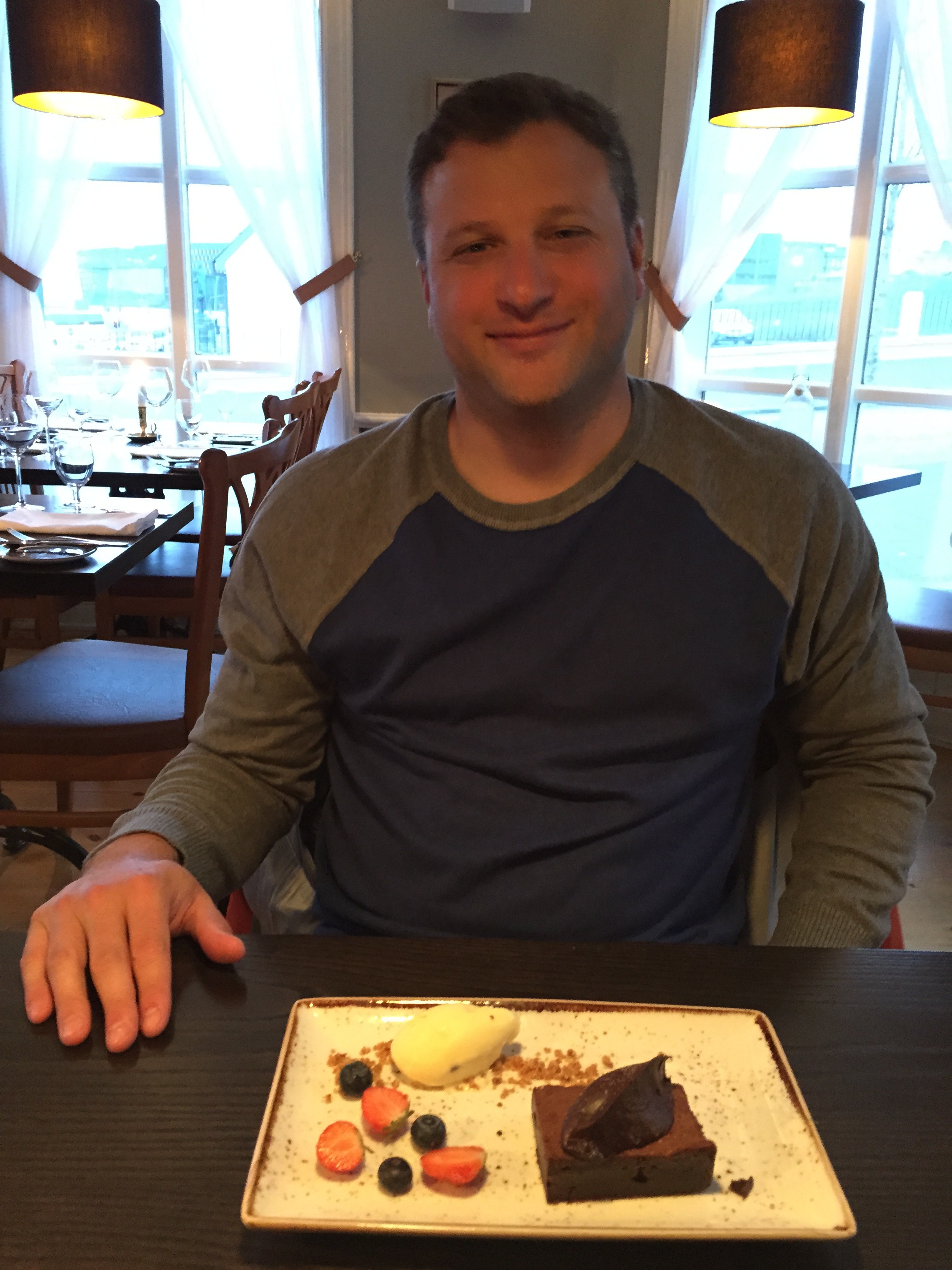 As we were strolling around after dinner we came across a small, adorable looking restaurant called Laekjarbrekka and we decided to go in for dessert. It was French and as we ordered dessert the man at the table next to us told us if dessert was as good as his dinner was then we were in for a good time.