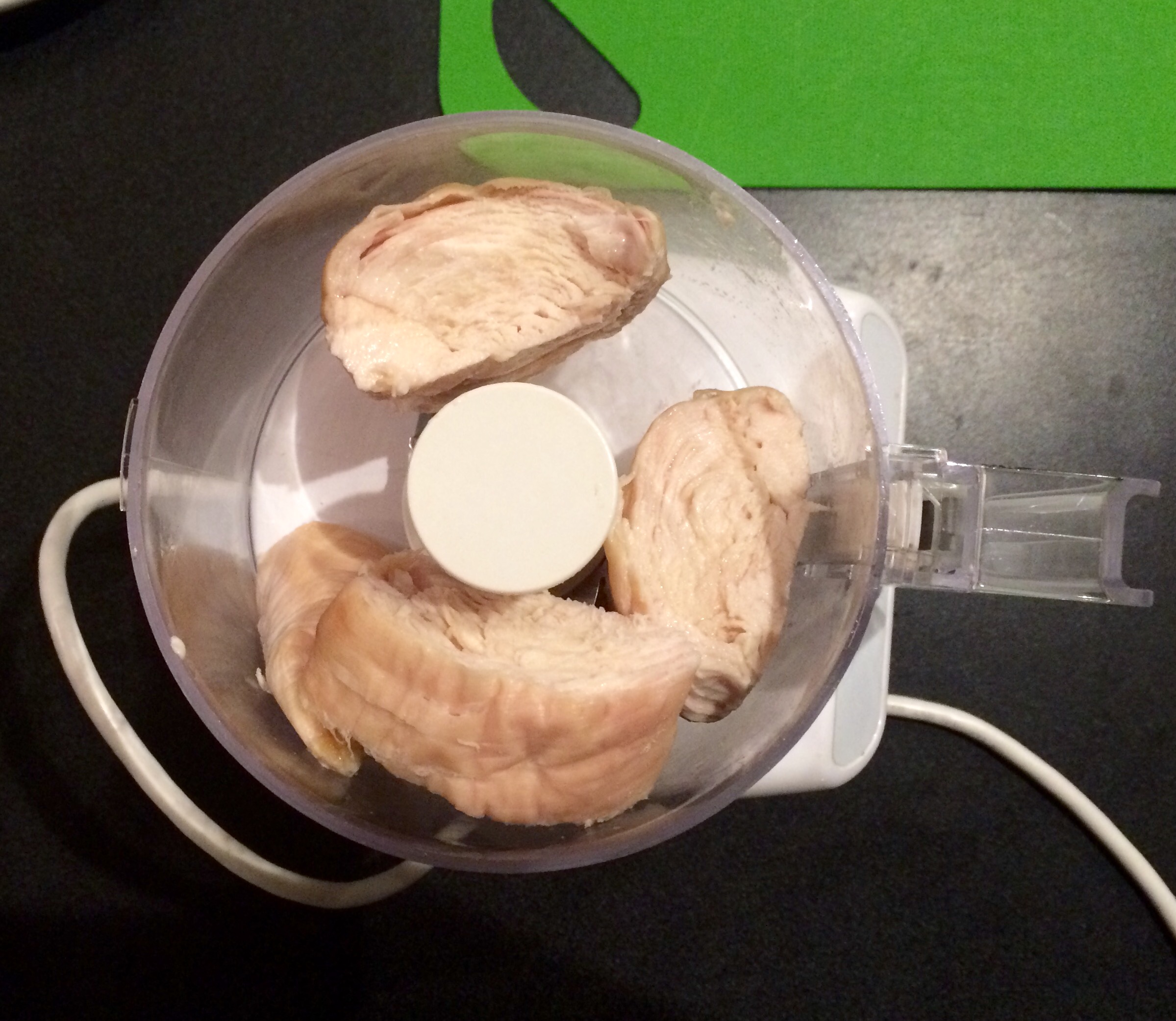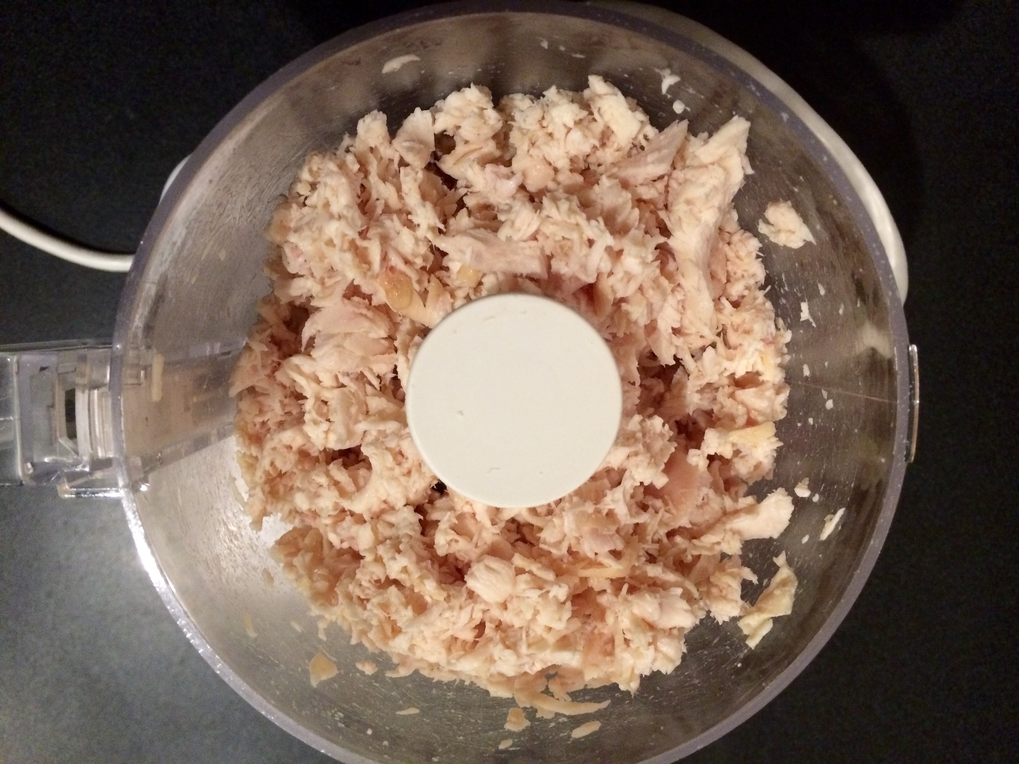 - Allow chicken to cool completely, then shred with fork or put in food processor and transfer to a bowl