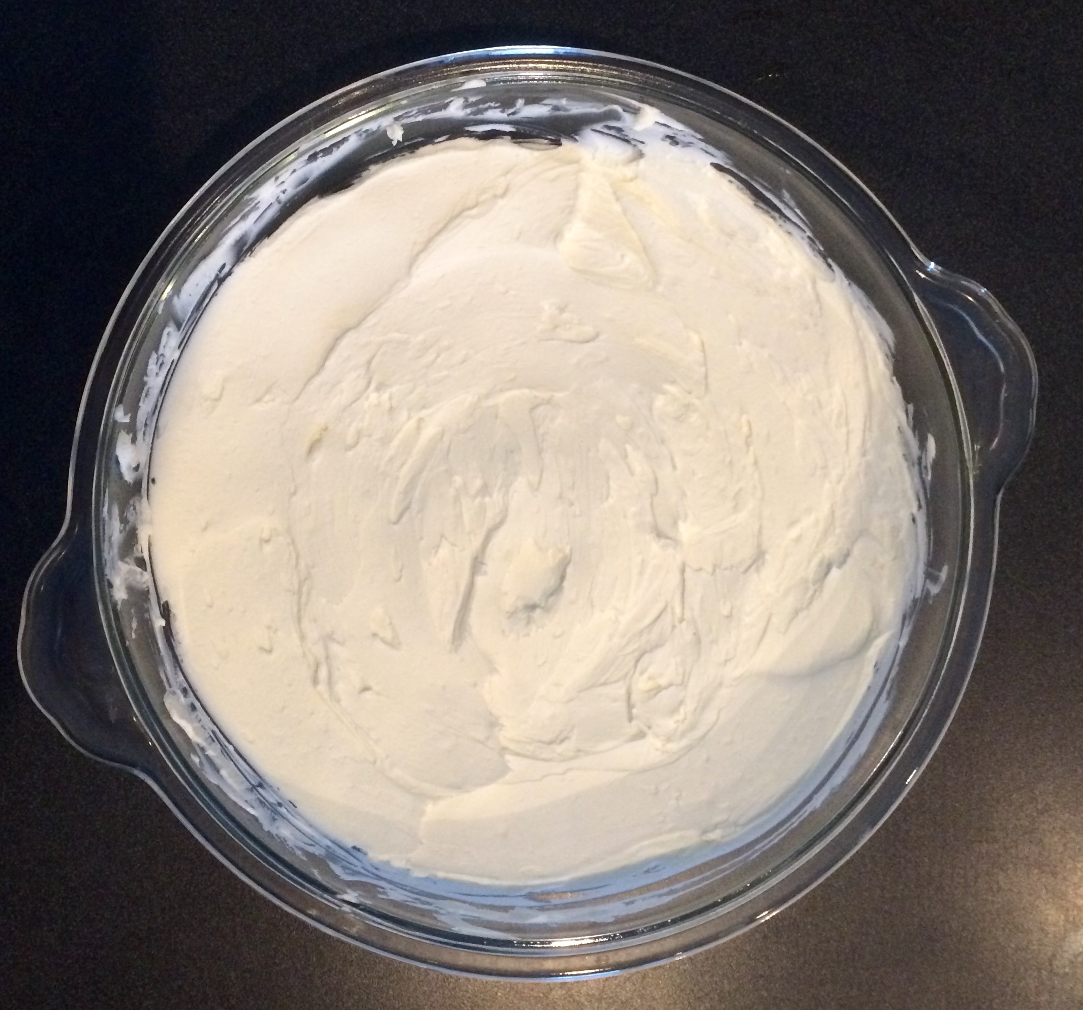 - Spread cream cheese on the bottom of a pyrex pan